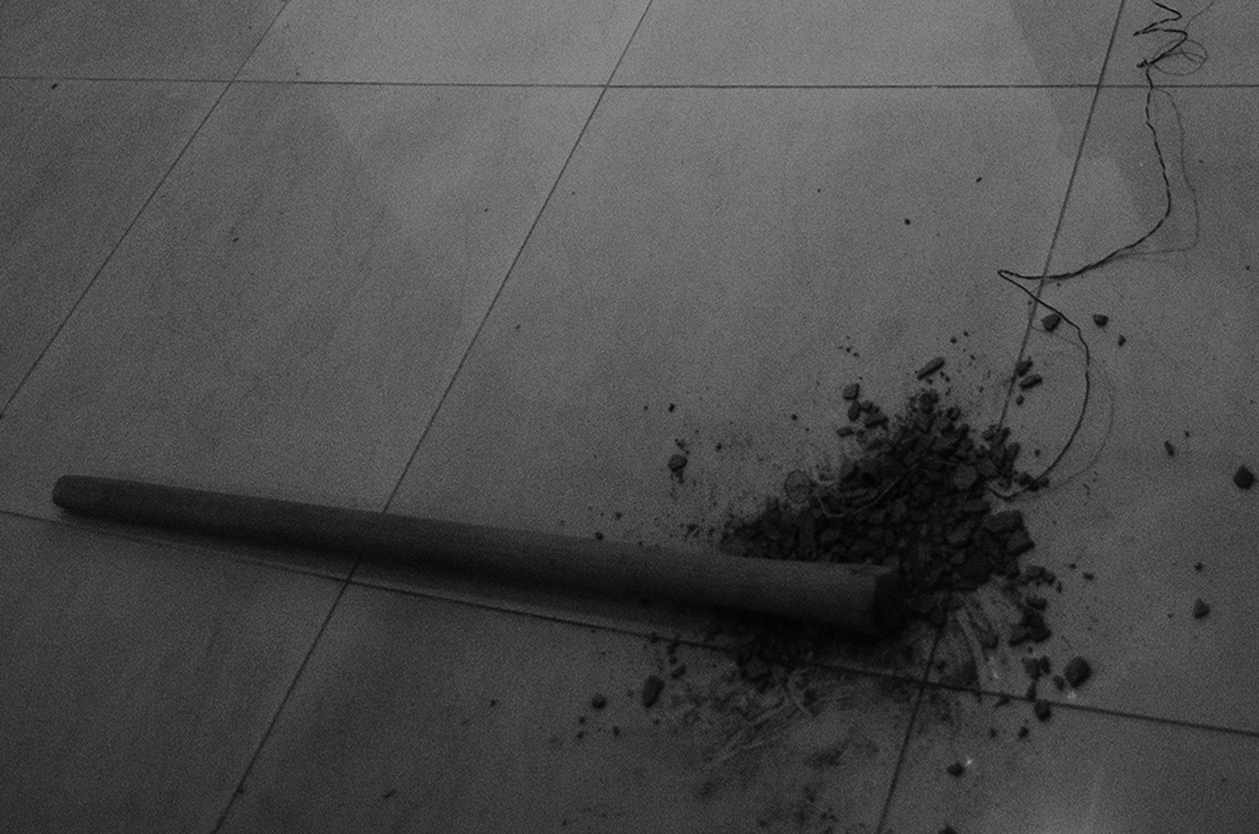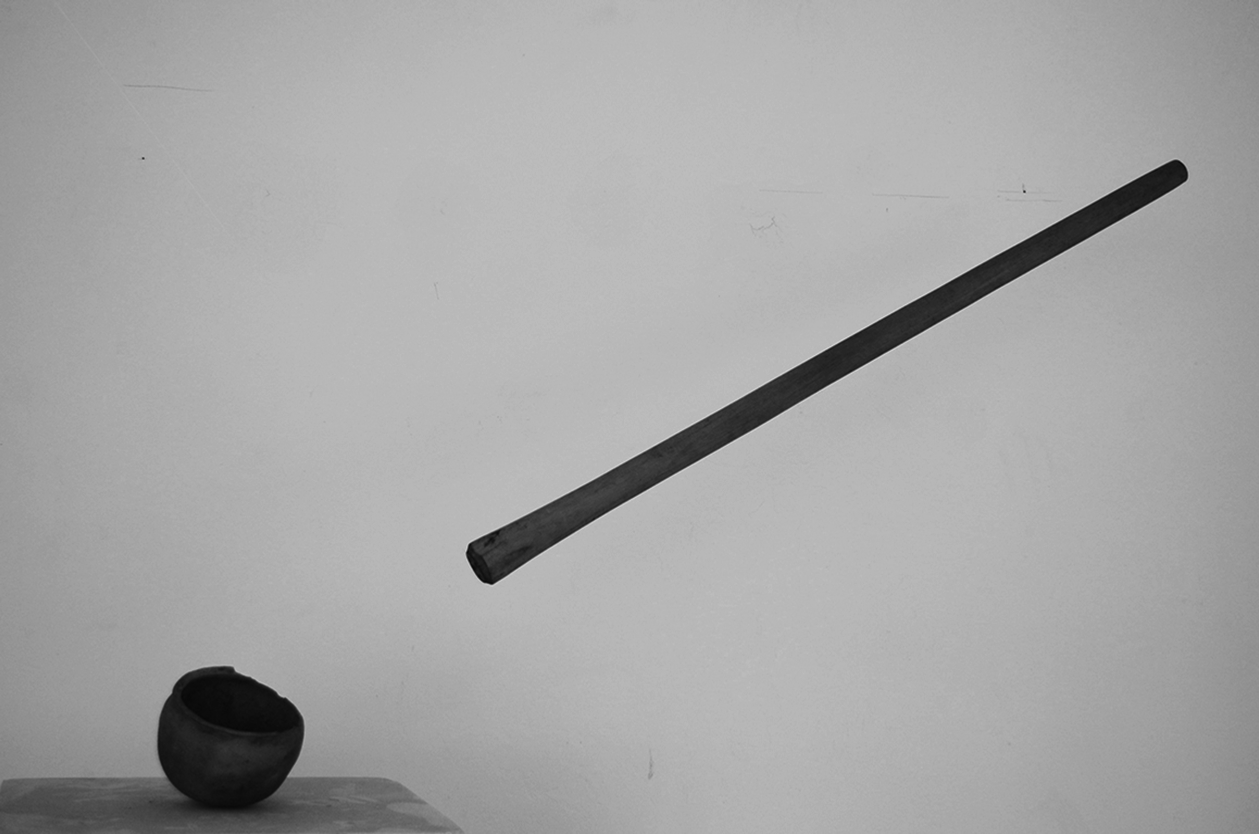 En el 2014 realizo una primera exhibición con la vasija y especulo a través de una instalación: la posibilidad de que un palo de madera la rompa. Desde esta exposición trame como sería el acto de transformación de este objeto, finalmente llevado a cabo en febrero de 2015.