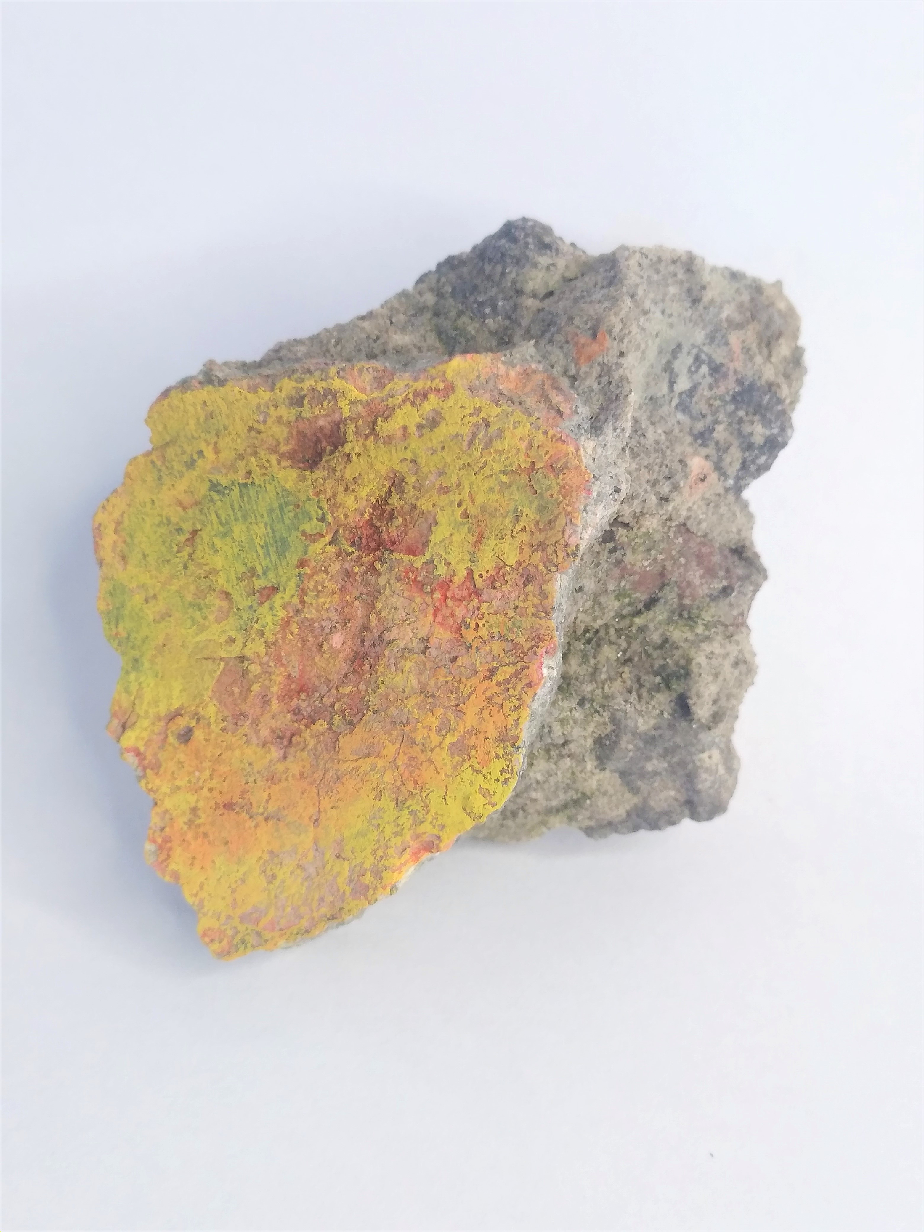 Medio: Objeto realizado con material pulverizado de una cerámica precolombina y un fragmento del muro de Berlín, resina, molde circular.