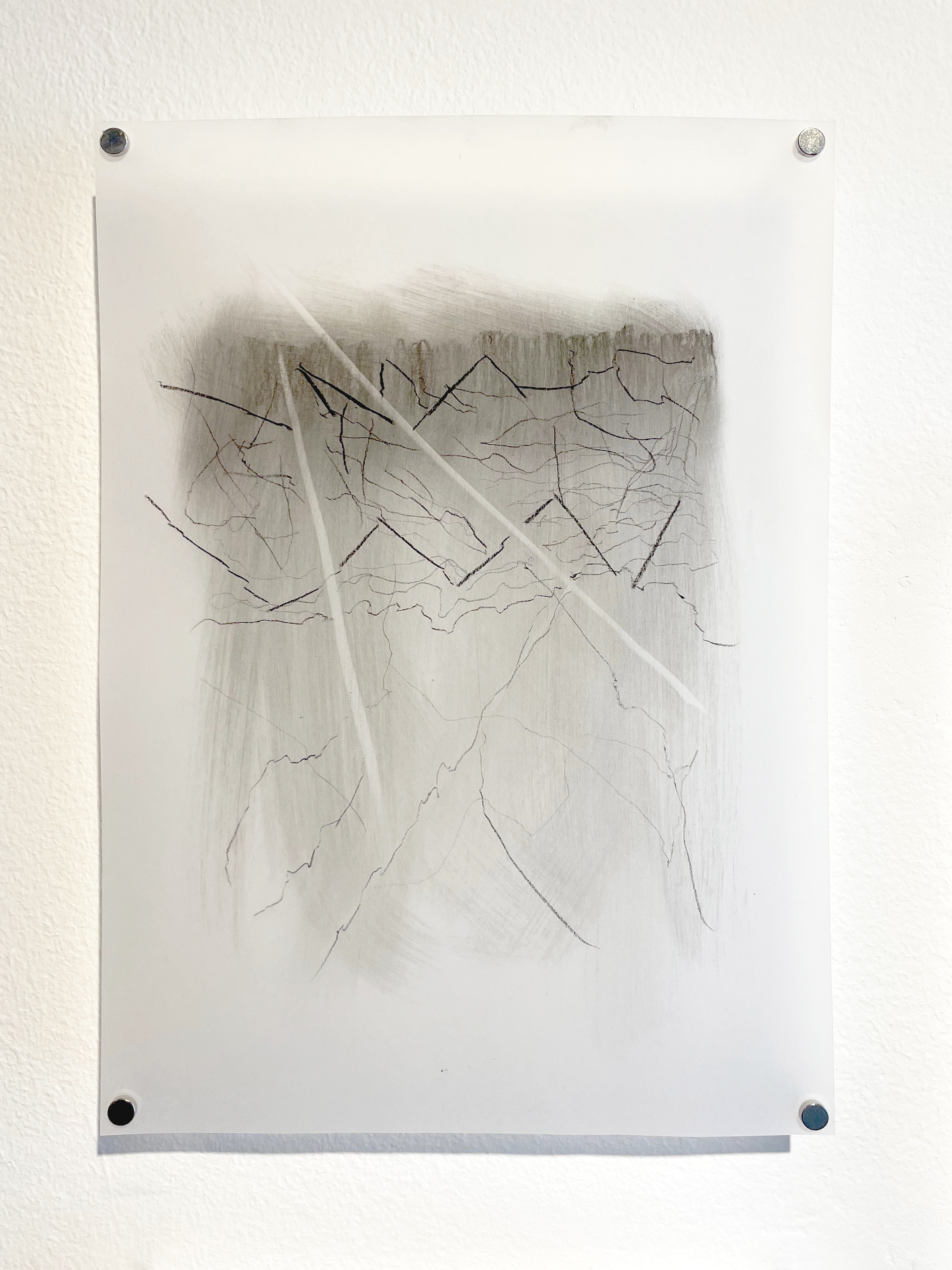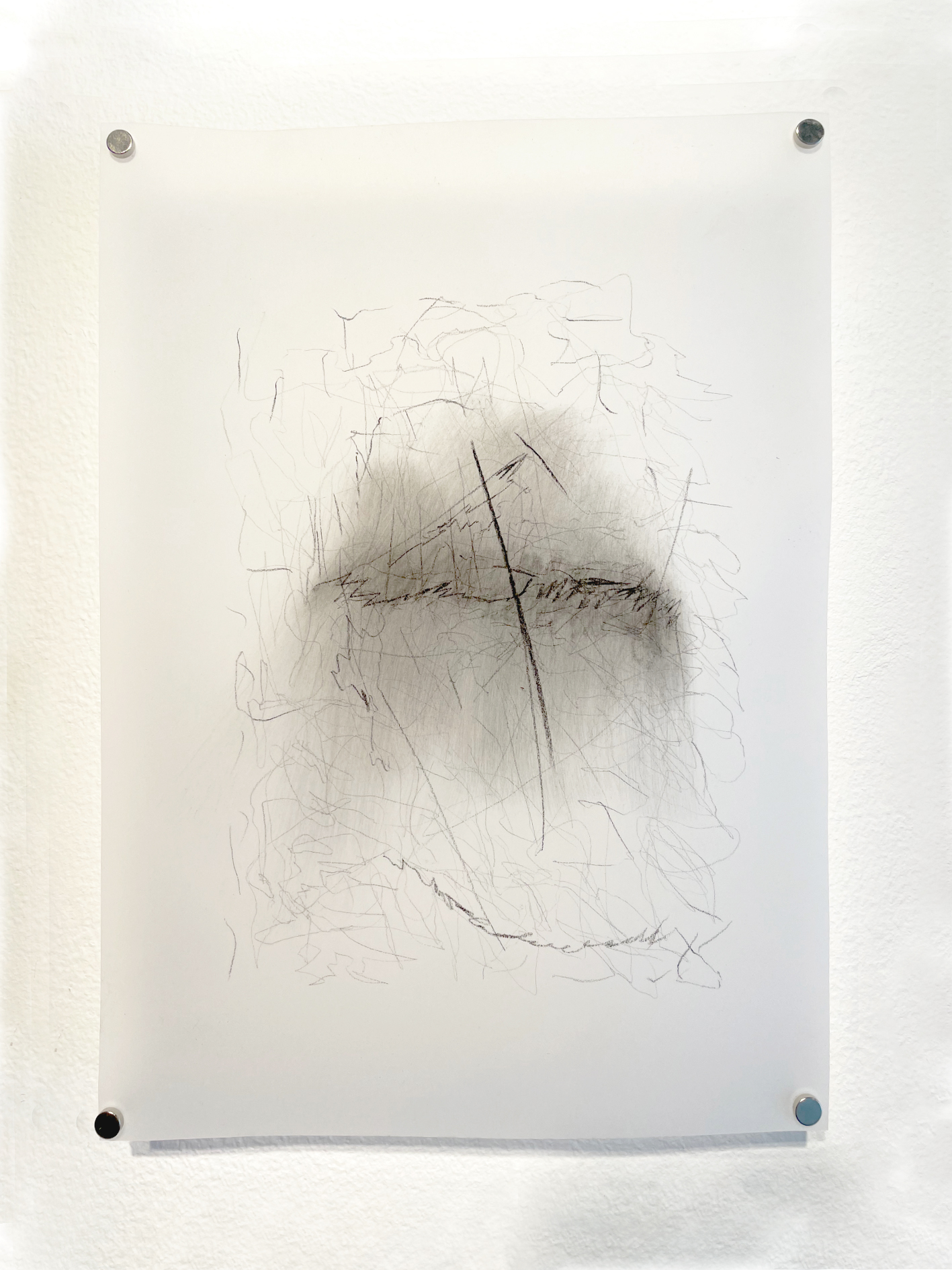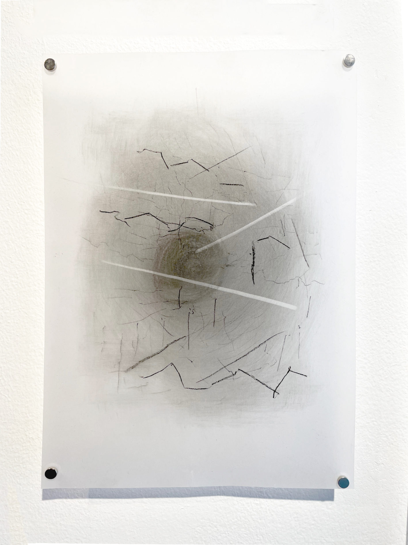 Medio: Nueve dibujos realizados en carboncillo sobre papel calco, borrador