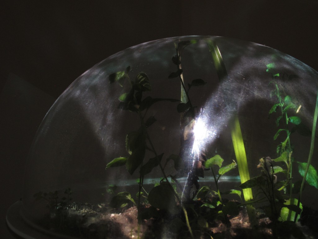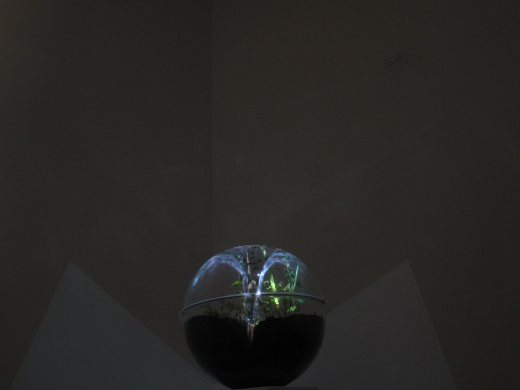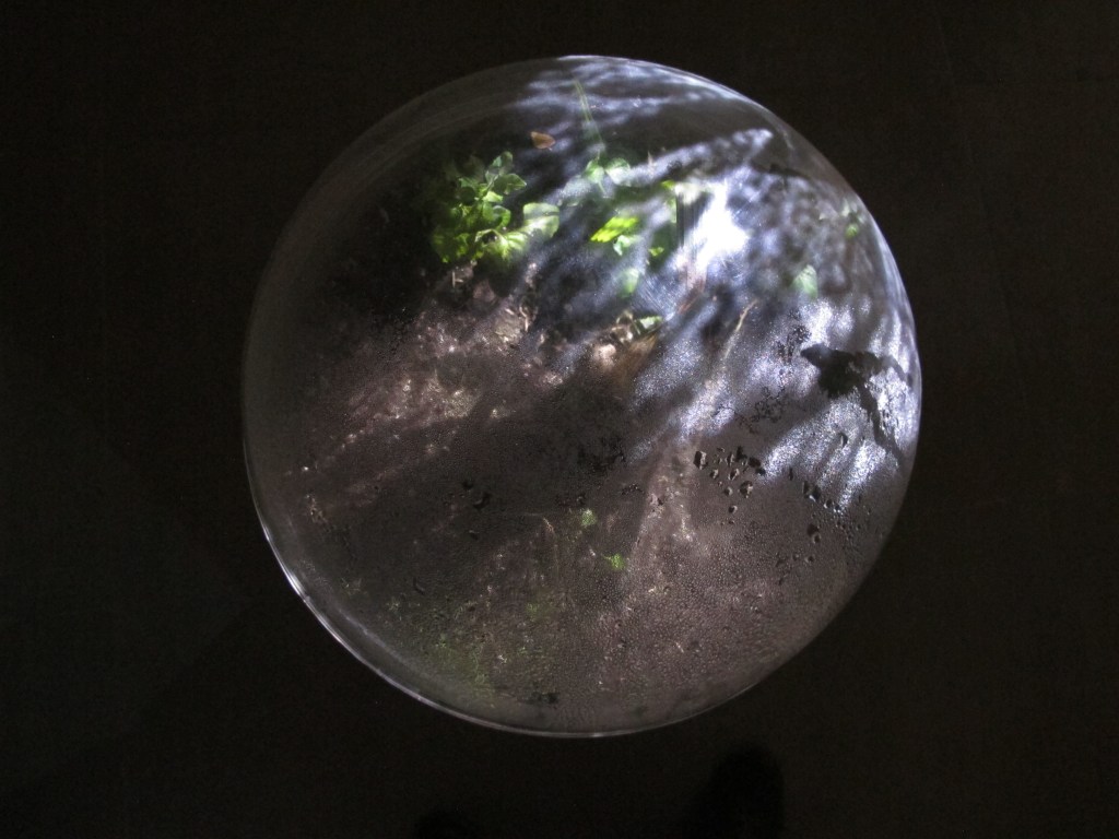 Una biosfera artificial elaborada con acrílico encapsula una especie del árbol Quishuar. En un futuro extinguible cuáles y cómo se construirán las formas y las nomenclaturas para albergar los espacios y especies a conservar.